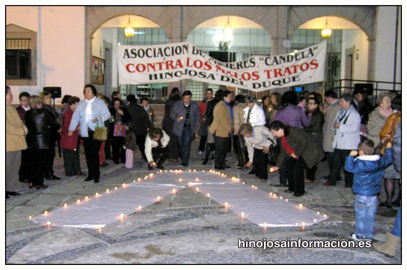 El pasado jueves día 22 con una charla-coloquio y una marcha hasta la Plaza de la Catedral, en la que un gran número de mujeres y pocos hombres se concentraron delante del Ayuntamiento para dar lectura, por parte del Sr. Alcalde, del manifiesto en contra de la violencia de género, y guardar un minuto de silencio por las víctimas, seguidamente se depositaron luminarias alrededor de un gran lazo blanco.