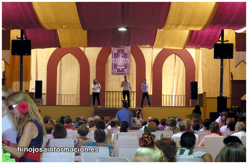 En la noche, del día anterior, casi da la una de la madrugada, ya se sabe, lo de la hora en la feria, en la Caseta Municipal, Las Carlotas dieron un concierto de su amplio repertorio con un público incondicional que llenaba el recinto.