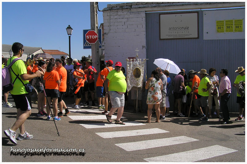 La despedida ha tenido lugar en el cruce de la carretera a Belalcázar con la de El Marmol. la elevada temperatura a esa hora no ha sido obstáculo para que estos peregrinos hinojoseños comiencen camino hacia Belalcázar, primero, y seguir a Cabeza del Buey (Badajoz) en donde harán noche.