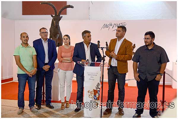 El escultor Nacho Martín asistió al acto de inauguración, y posteriormente atendió personalmente a un grupo de alumnos de Bachillerato de Arte del IES Jerez y Caballero, en un stand en el que se mostraba parte de su obra relacionada con la caza.