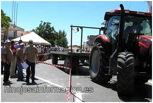 Personas que organizan en un día de la Feria de San Agustín el «Concurso de Habilidad de Tractor con Remolque»
