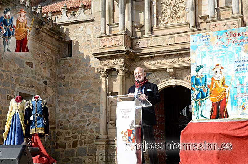 En la Plaza de la Catedral de Hinojosa del Duque se ha celebrado el acto de presentación de los personajes de la «VIII Edición de Teatro Popular La Vaquera de la Finojosa», que se celebrará durante los días 4, 5, 6, 7 y 8 de agosto de 2022.