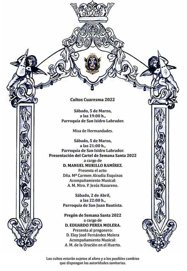 Cultos Cuaresma 2022 en Hinojosa del Duque 1 marzo, 2022 Redactor Noticias 0 01-03-2022 La Agrupación General de Hermandades y Cofradías de Semana Santa de Hinojosa del Duque anuncia los Cultos de la Cuaresma 2022 Relacionado actividadesACTUALIDADCUARESMAHINOJOSA DEL DUQUENoticias